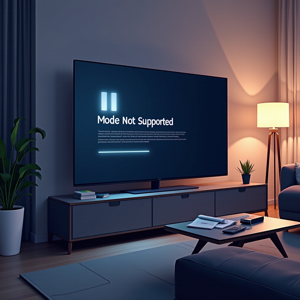 Le message 'Mode Non Pris en Charge' indique une incompatibilité entre le signal vidéo de votre appareil source et les paramètres de votre téléviseur. Cette erreur est souvent liée à des résolutions incompatibles ou à des défauts dans les paramètres de l'appareil connecté. Malgré une apparence techniquement complexe, ce problème est généralement facilement résolvable en ajustant certains paramètres.
